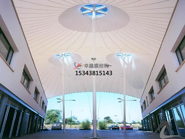 6、膜結(jié)構(gòu)以造型學(xué)、色彩學(xué)為依托,可結(jié)合當(dāng)?shù)刈匀粭l件及民族風(fēng)情,設(shè)計出屬于自己獨特結(jié)構(gòu),使得成為一道亮麗的風(fēng)景線。并且經(jīng)濟性較實用、采用膜結(jié)構(gòu)會有很大的優(yōu)勢,其成本只相當(dāng)于傳統(tǒng)棚的二分之一左右,而且膜結(jié)構(gòu)能夠拆卸,易于搬遷。表面涂有聚四氟乙烯涂層,不易附著灰塵,依靠雨水沖洗就能保持潔凈。
